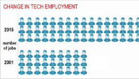 Since the end of the financial crisis, Midtown South has been one of the fastest growing sub-markets in Manhattan due to the large influx of Technology, Advertising, Media, and Information (TAMI) tenants migrating to the market. Silicon Alley, New York’s version of Silicon Valley, is the area just north of Union Square renown for its concentration of TAMI tenants. As tenants continue to relocate to Midtown South, Silicon Alley continues to grow. There has been a 75.5% increase in tech jobs from 2001 to 2015. In fact, the overall tech industry accounts for more than 291,000 jobs and produces more than $124.7 billion in economic output according to New York City’s Economic Development Corporation. Venture capital funding for tech has begun to taper due to growing economic and political uncertainty causing funding to focus on later stage tech companies, many of which are located in the Midtown South market.(1)