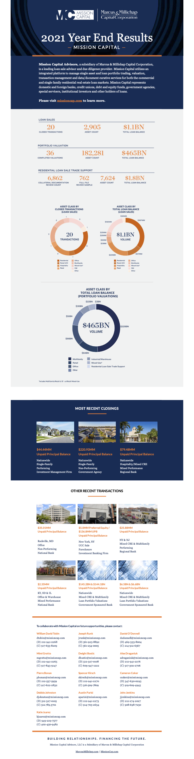 Visit our website for more information about Loan Sales and Real Estate Sales. Learn more about the extensive offerings and the global reach of Marcus & Millichap now.