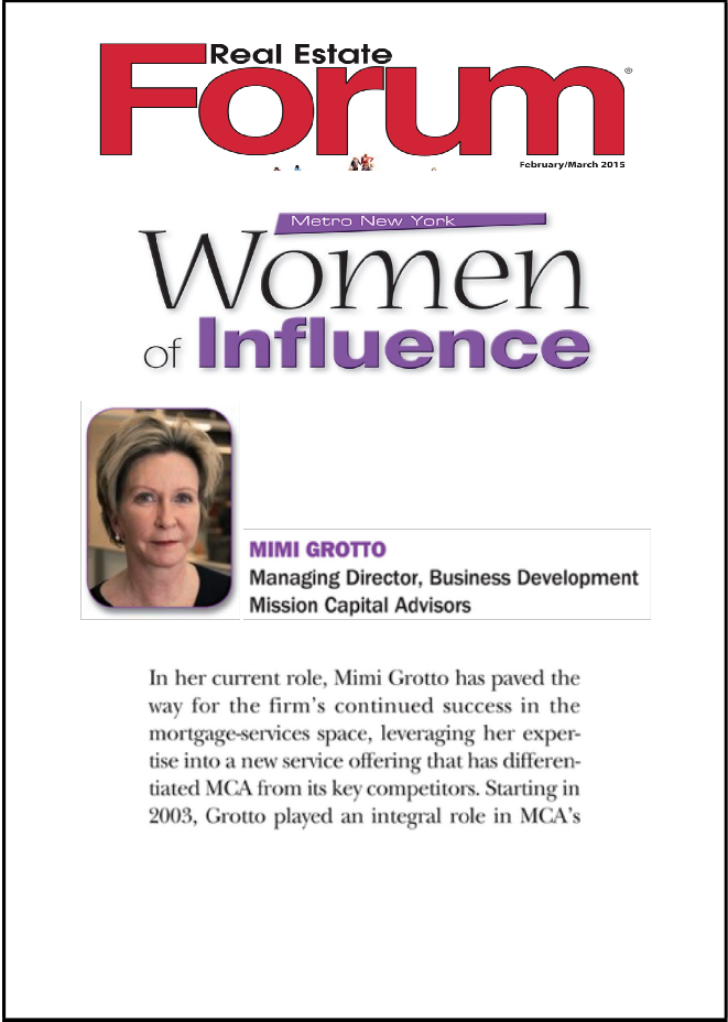 Real Estate Forum named Mission Capital’s Mimi Grotto one of their Metro New York “Women of Influence”