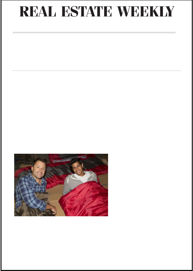 The “Real Estate Executive Sleep Out” Committee includes executives from top real estate companies that include: Witkoff Group; RREEF Transactions; Lone Star Funds; Madison Development; Mission Capital; UBS Real Estate; Thor Equities; Cassidy Turley; Convene and TOWN.