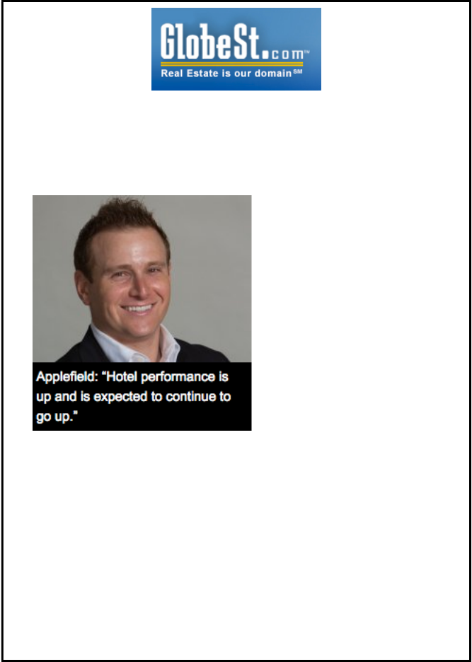 Hotel performance in general is up and is expected to continue to rise, he adds. “In 2013, occupancy and RevPAR are the strongest we’ve seen in several years, and we expect those figures to start getting closer to or above where they were in the peak of the last cycle. With respect to transaction volume, the sector started